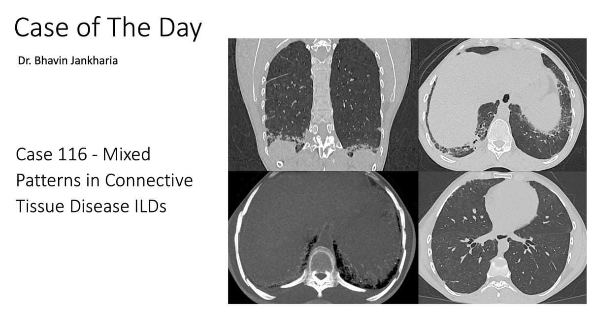 This complements the earlier post on Connective Tissue Disease ILD Patterns, where I did not discuss "mixed patterns" in detail and the previous post titled "Mixed Patterns in Connective Tissue Disease ILDs" as well as last month's post titled "Decoding DPO and CiOP"
