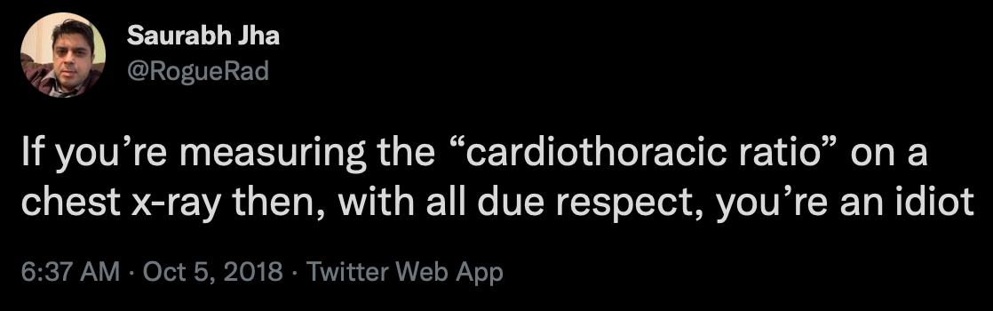103 years later, many radiologists still reach for a ruler (physically or on screen) to measure the CTR. As far back as in 1973, Dr. Davies mentioned in JAMA that it was pretty much useless.