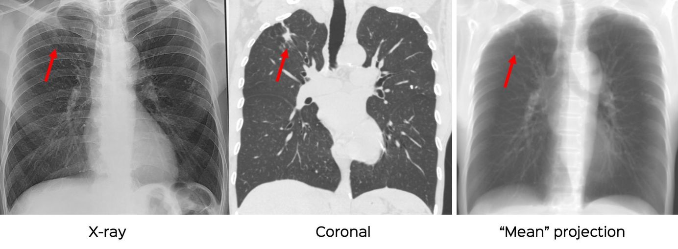 60-years old 40 pack-years history smoker - resolving an RUL lesion using the "mean" projection function