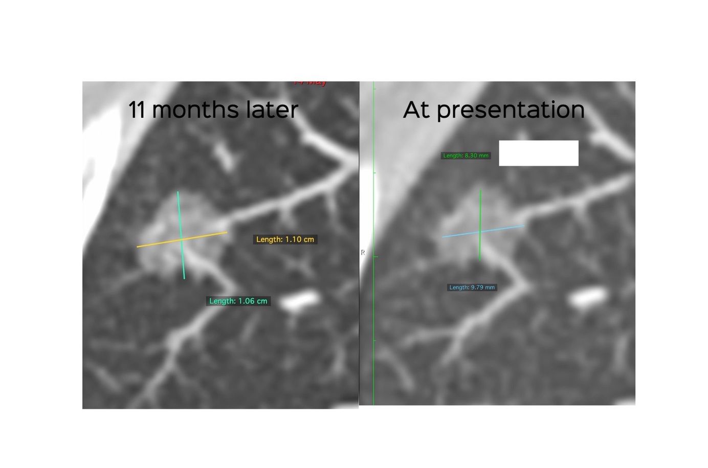 64-years old with an incidentally detected subsolid nodule that grew over 11 months.