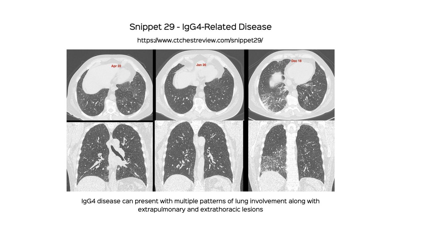 A discussion of the various manifestations of IgG4-related disease - pulmonary, extrapulmonary and extrathoracic.