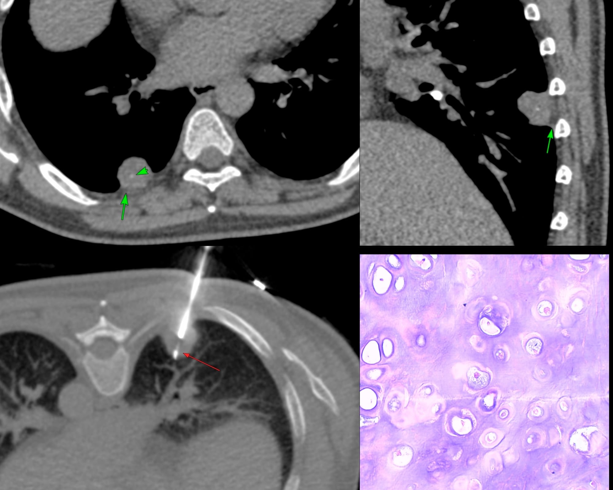 56-years old with an incidentally detected lung nodule in the superior segment of the right lower lobe of the lung. It showed one calcific speck. No contrast. No PET. There was extrapleural fat retraction, suggesting this could be extra-pulmonary.
