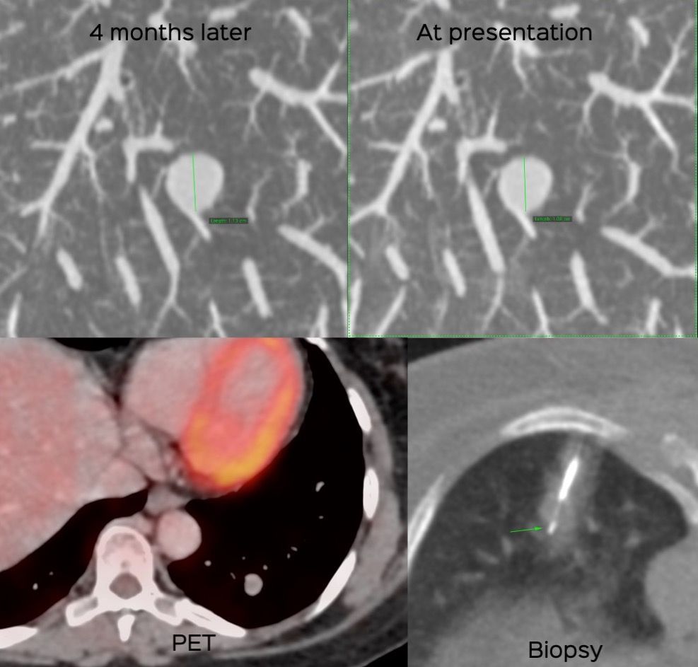 64-years old with an incidentally detected subsolid nodule that grew over 11 months.